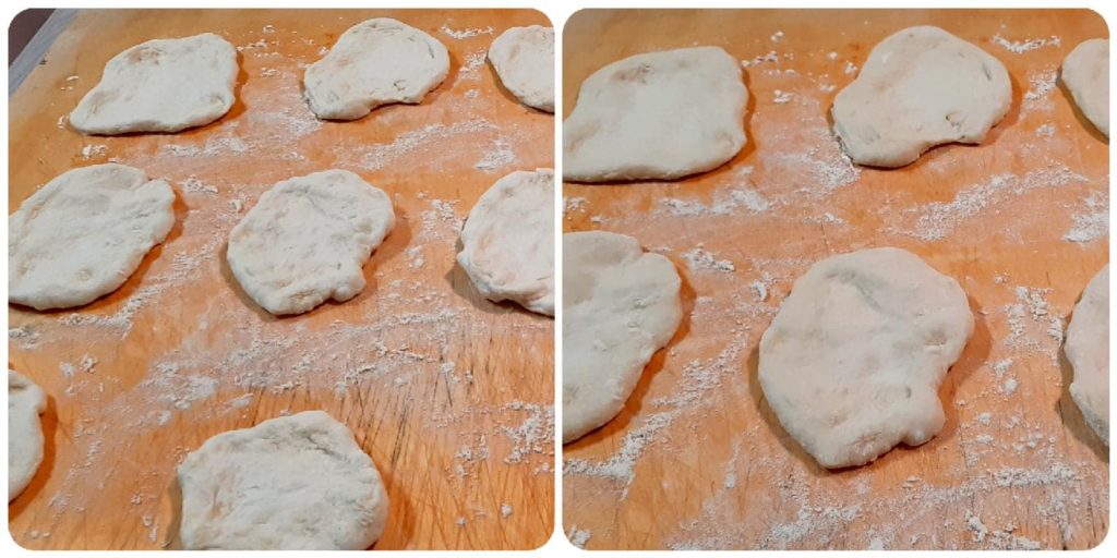 …à partir de là, former des petites pizzas de environ 60 gr chacune et il devrait en sortir 12, les laisser sur un plan de travail fariné couvertes à lever jusqu’au moment de la friture.