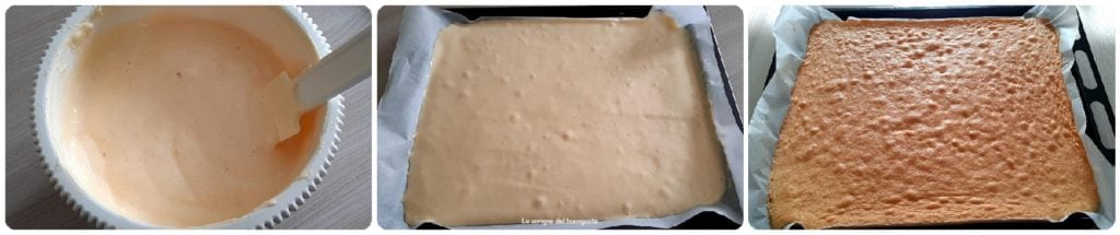 Dans ce cas, j’ai décidé de ne pas imbiber la base car elle était très moelleuse et en fait, une fois garnie, il n’était pas nécessaire de l’imbiber, mais si vous le souhaitez, vous pouvez bien sûr le faire peut-être avec un peu de rhum et d’eau.