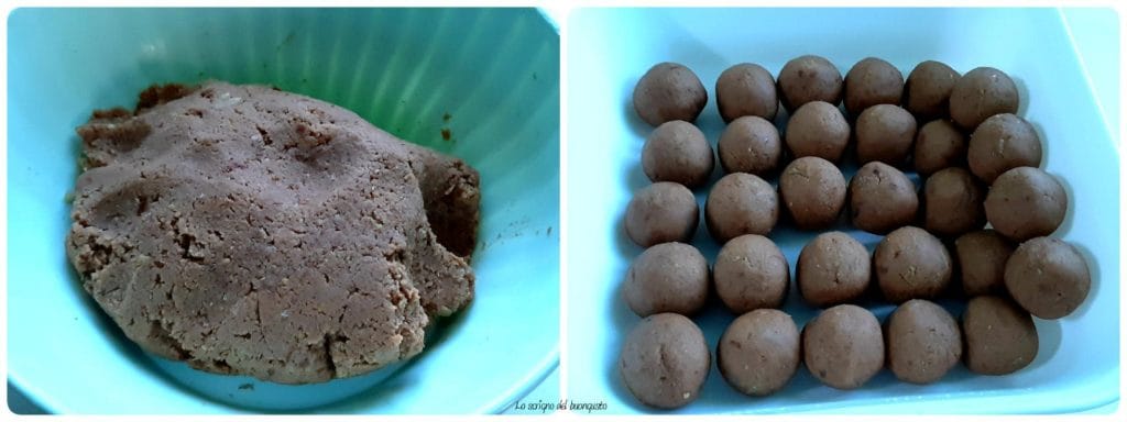 Transférez le mélange obtenu dans un bol, formez des petites boules de la taille de noix, mettez-les dans un contenant et transférez-les au réfrigérateur.