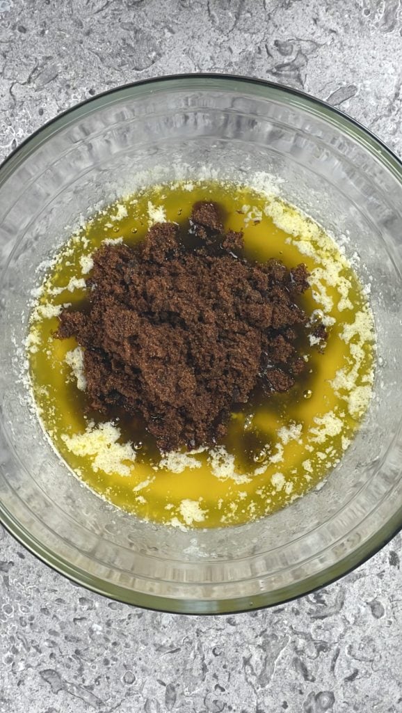 Laissez-le tiédir légèrement et ajoutez le sucre de canne. J’ai utilisé celui intégral.