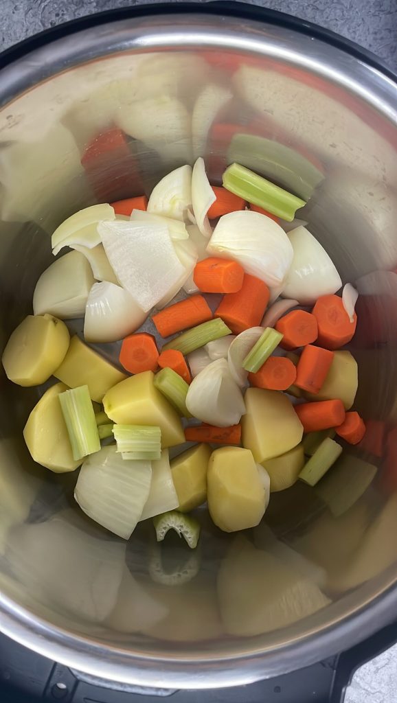 Commencez la préparation du bouillon de poulet avec l’Instant Pot par les légumes.