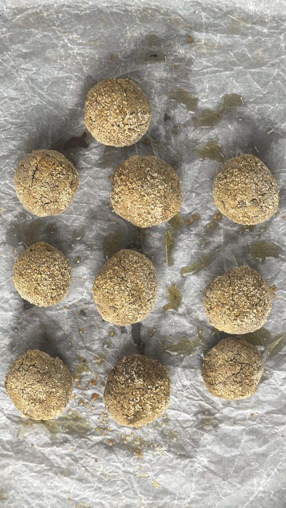 Au bout d’une demi-heure, sors les boulettes du frigo et ajoute encore une cuillère d’huile.
