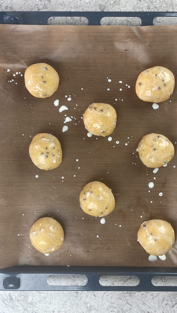Badigeonne à volonté les brioches avec un peu de lait ou avec un œuf battu.