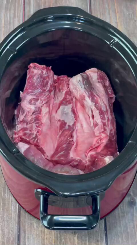 Nettoie le brisket de l’excès de gras et place-le dans la slow cooker (alternativement, tu peux demander à ton boucher de le faire pour toi).