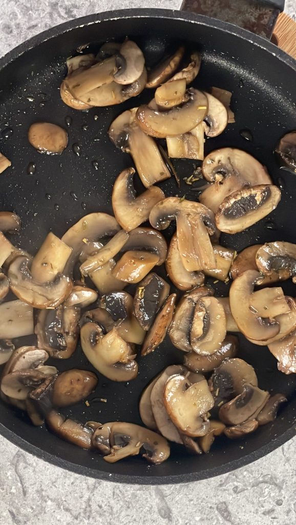 Les champignons crémini sont parfaits, mais tu peux aussi utiliser des champignons de Paris, des cèpes ou un mélange de champignons sautés. L’important est de bien les faire sauter pour éliminer l’excès d’eau et obtenir une garniture savoureuse.