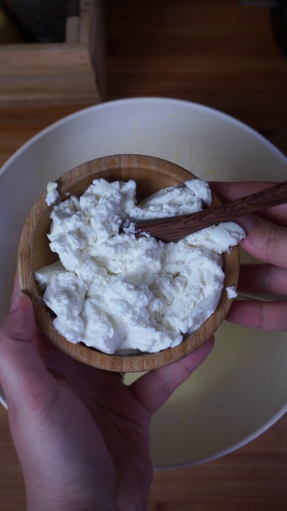 • Égoutte bien la ricotta et ajoute-la au mélange préparé jusqu’à présent : mélange bien avec le fouet en veillant à ne pas former de grumeaux de fromage.