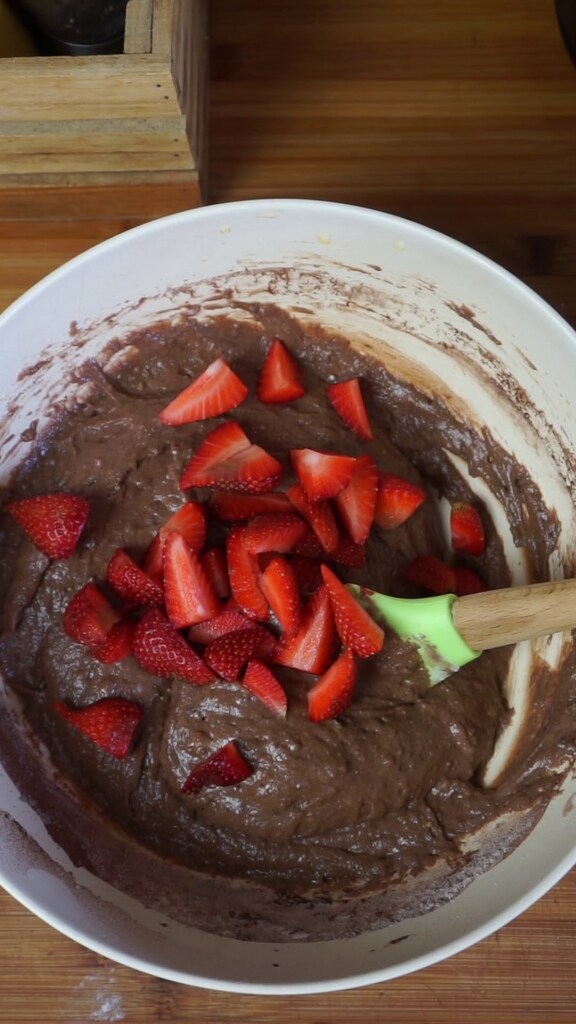 En raison de la présence de fruits frais dans la pâte à cake, je te déconseille de le congeler. Tu peux le conserver 2-3 jours dans un contenant hermétique de préférence au réfrigérateur. Si tu ne le manges pas au petit-déjeuner, tu peux l’agrémenter d’un glaçage aux fraises ou d’une ganache au chocolat.