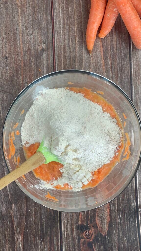 Ajoutez aux carottes râpées les œufs, l’huile de tournesol, l’extrait de vanille et le lait. Si vous êtes intolérant au lactose, vous pouvez utiliser une boisson végétale non sucrée.