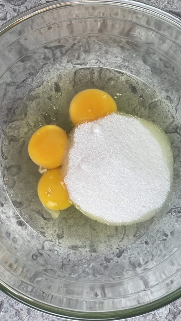 Bats les œufs avec le sucre jusqu’à ce qu’ils aient doublé de volume.