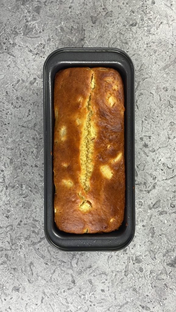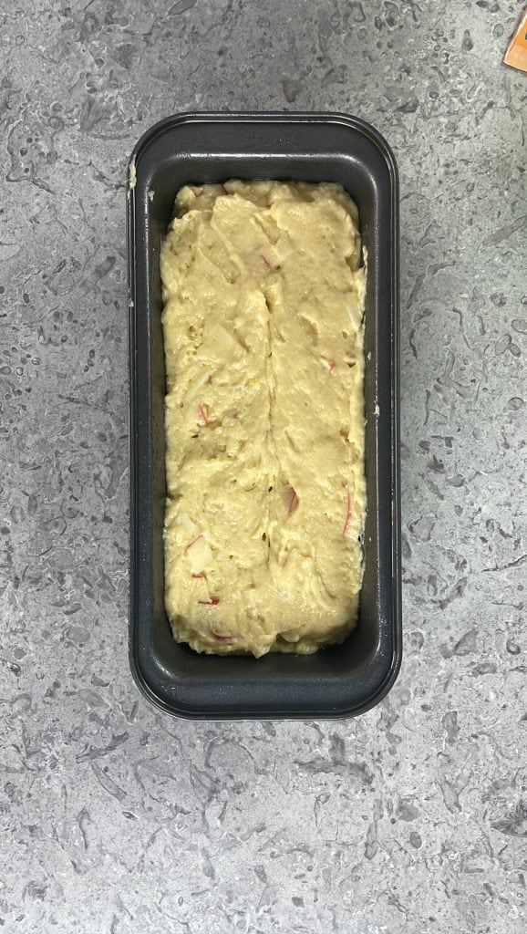 • Termine la préparation du cake en ajoutant la pomme et en la répartissant bien dans la pâte.