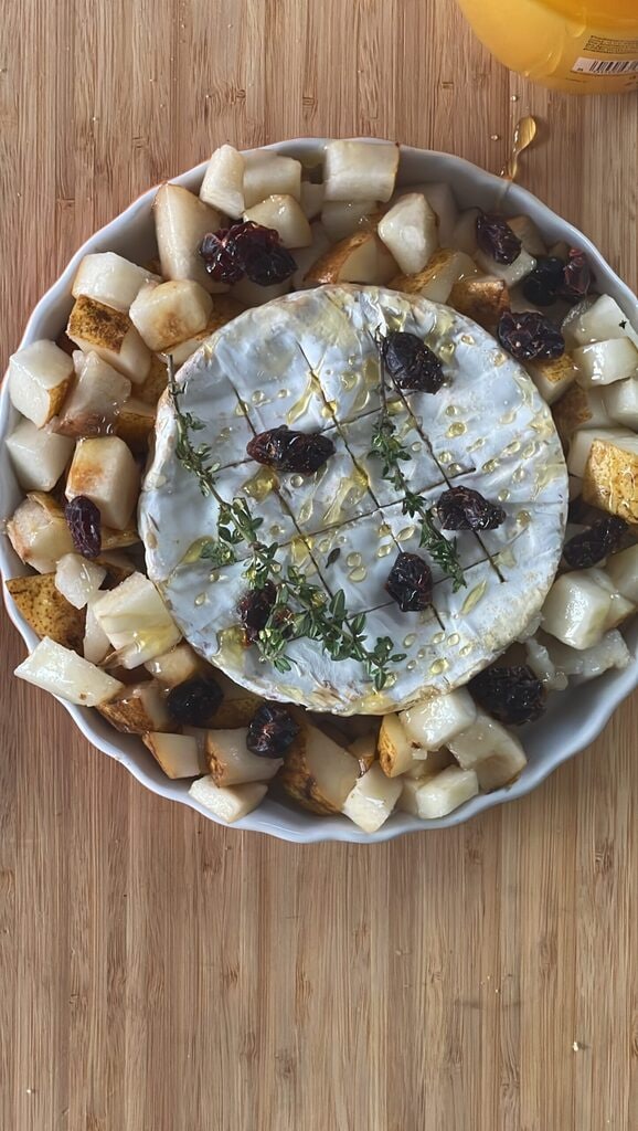 Camembert au four avec poires et miel
