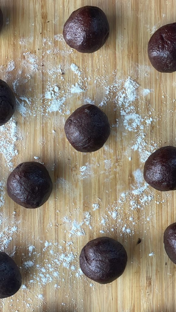Donne à chaque morceau de pâte une forme sphérique en le façonnant comme une boulette.