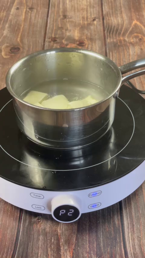 Ajoutez une cuillère à café de sel et le beurre qui doit fondre complètement avant de continuer avec la recette.