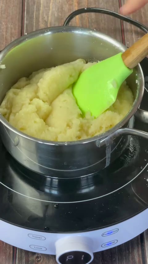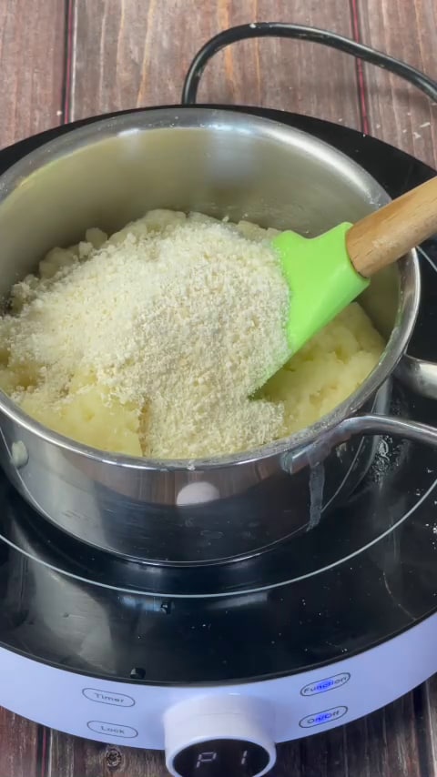 • Éteignez le feu et ajoutez à la pâte des churros le Parmesan.