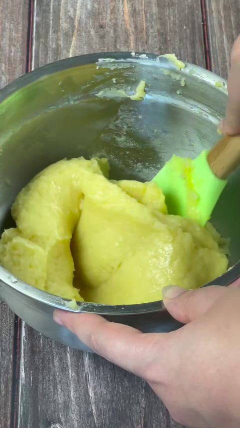 Ajoutez-en un, incorporez-le complètement à la pâte, ajoutez également l’autre et mélangez à nouveau jusqu’à obtenir une pâte homogène.