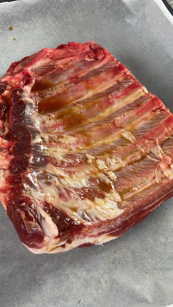 Cuisez la viande pendant 2 heures.Retirez les côtes du four, brossez-les encore un peu avec de la marinade et remettez-les au four pour 30 minutes supplémentaires.