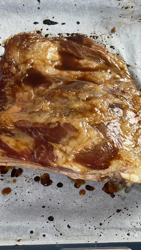 Brossez la viande avec la sauce préparée à l’aide d’un pinceau de cuisine en veillant à bien recouvrir tous les côtés de marinade.