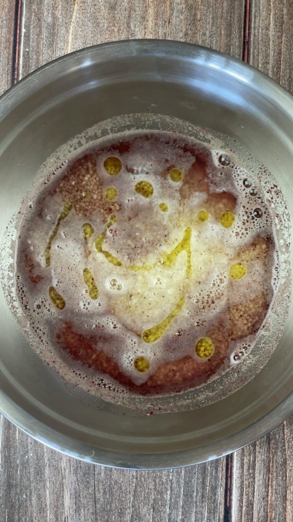 Ajoute une cuillère à café d’épices de ton choix – j’ai choisi le sumac – et mélange avec une cuillère pour bien amalgamer.Fais bouillir de l’eau dans une casserole ou avec une bouilloire (alternativement, vous pouvez préparer un bouillon de légumes). Sale l’eau et verse-la dans le bol avec le couscous en le couvrant complètement.