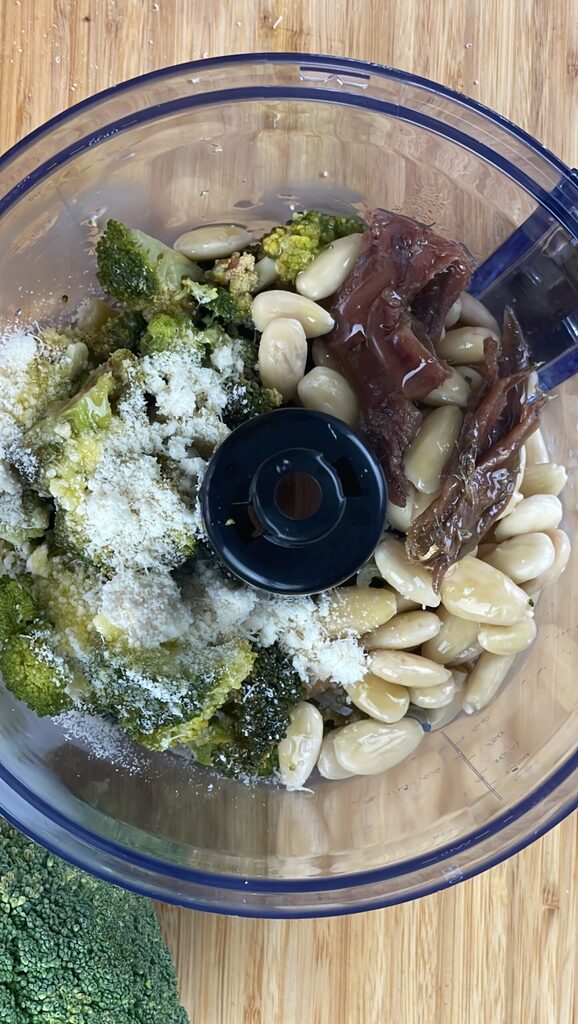 Ajoutez également les filets d’anchois et le pecorino romano râpé.