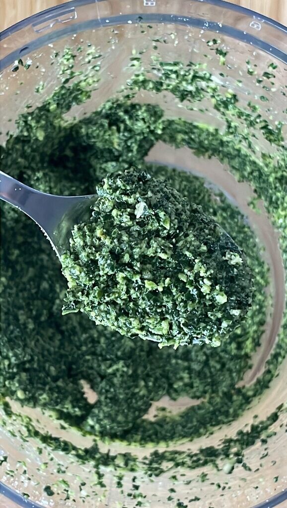 Le chou noir, légume typique de la saison froide, est riche en vitamines, fibres et antioxydants, et est souvent utilisé dans les soupes et potages. Dans cette version crémeuse, il se marie à la douceur des amandes et au goût prononcé du pecorino romano, créant un condiment polyvalent et irrésistible.