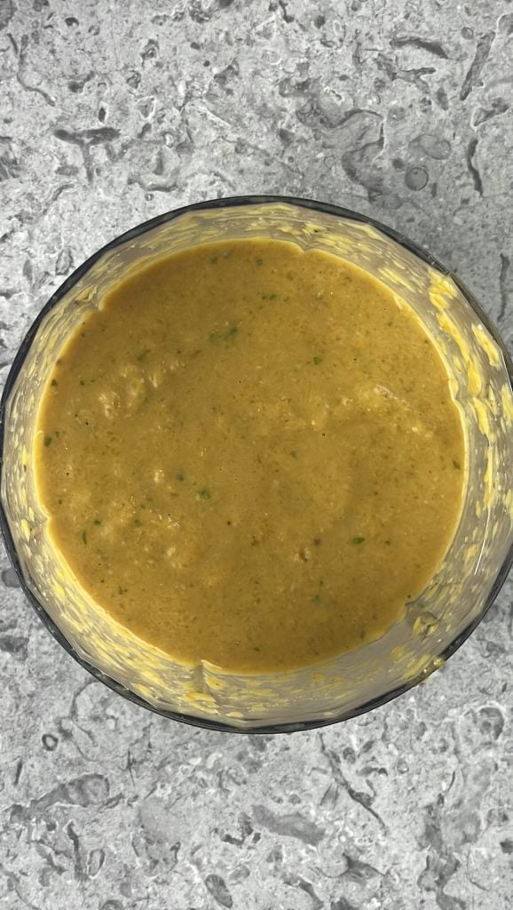 J’ai rôti les poivrons dans une friteuse à air, mais vous pouvez aussi les cuire au four traditionnel ou sur le gril, l’important est qu’ils soient bien grillés pour obtenir une crème plus savoureuse et parfumée. Une fois pelés, les poivrons sont mixés avec les autres ingrédients jusqu’à obtenir une consistance lisse et veloutée, parfaite pour être étalée ou mélangée.
