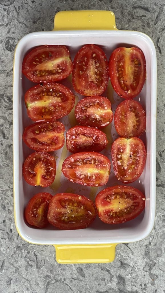 Termine à ton goût avec le jus de cuisson des tomates cerises.