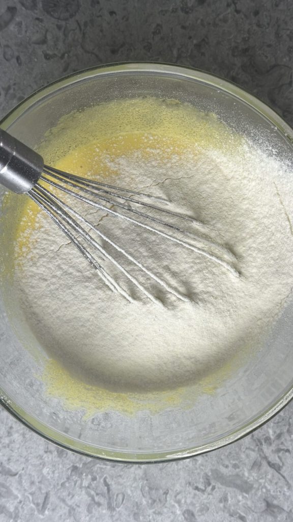 Ajoute la farine 00 directement dans le bol avec les œufs et le sucre en la tamisant.