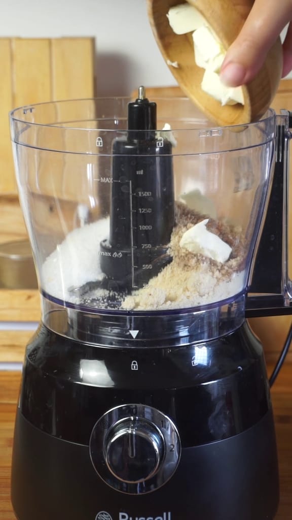 Tu peux aussi faire cette opération à la main : mets tous les ingrédients dans un saladier et pince le beurre du bout des doigts tout en incorporant les ingrédients secs.