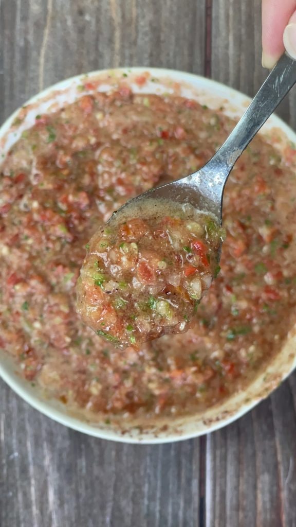 Si vous souhaitez une ezme plus épaisse, vous pouvez la cuire à feu doux pendant une courte période pour réduire l’humidité.