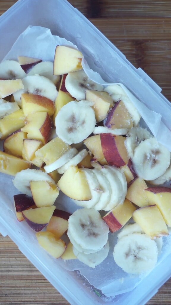 • Une fois congelés, reprenez les fruits du congélateur et transférez-les dans un mixeur ou un robot de cuisine.