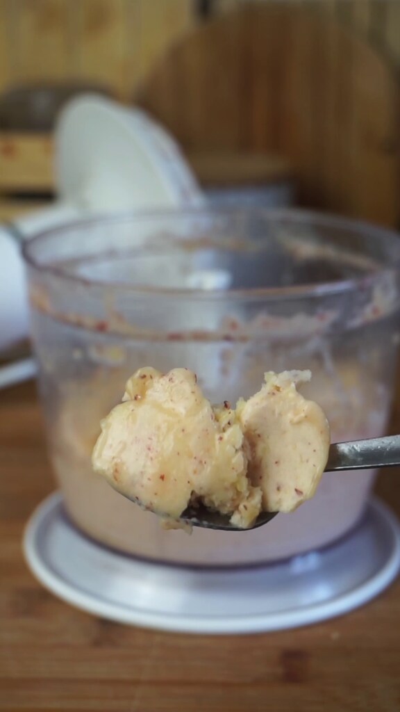 Commencez à mixer : au début, vous obtiendrez une consistance sableuse, mais en continuant, elle deviendra de plus en plus crémeuse.