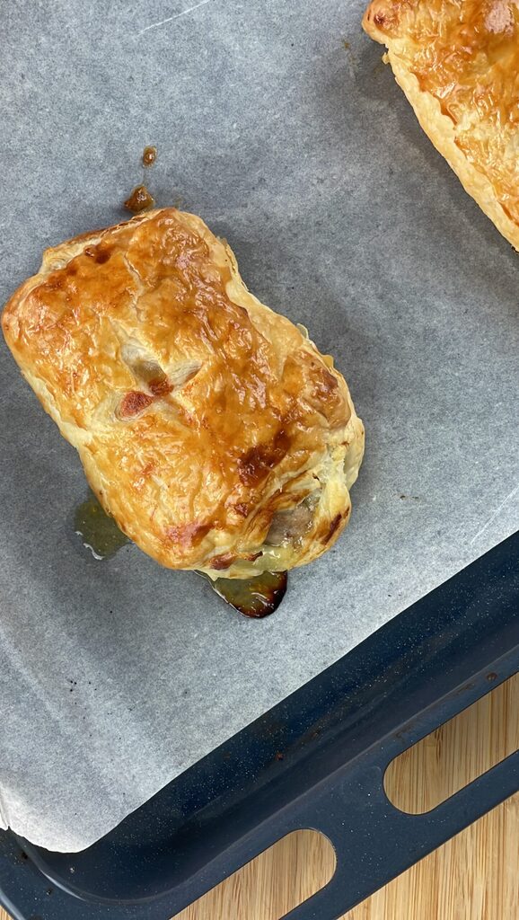 Fais cuire les feuilletés farcis aux épinards avec les oignons caramélisés dans un four préchauffé en mode ventilé pendant 20-25 minutes ou jusqu’à ce qu’ils soient bien dorés.