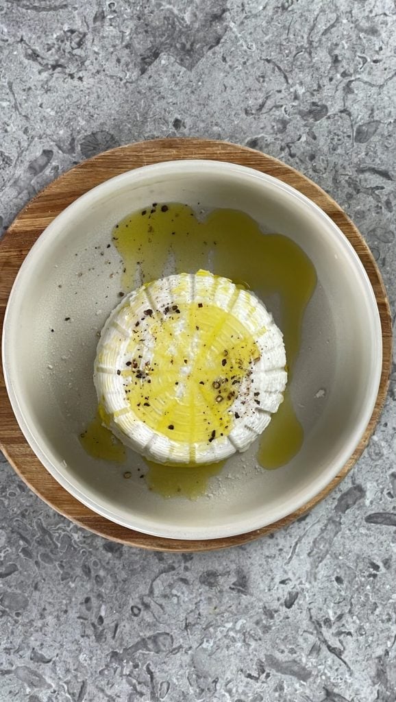 Faites-les cuire sur le grill pendant 2-3 minutes de chaque côté ou dans une friteuse à air avec la fonction grill pendant 4-5 minutes de chaque côté.Assaisonnez la ricotta de chèvre avec du sel, du poivre noir et de l’huile d’olive extra vierge.