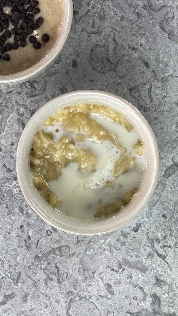 Pour rendre le gâteau à la banane en tasse encore plus gourmand, couvrez la surface de pépites de chocolat.