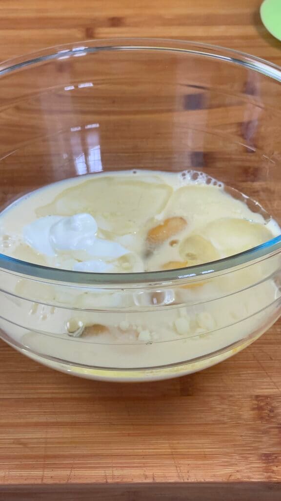 Mélange avec les fouets jusqu’à obtenir un mélange homogène.