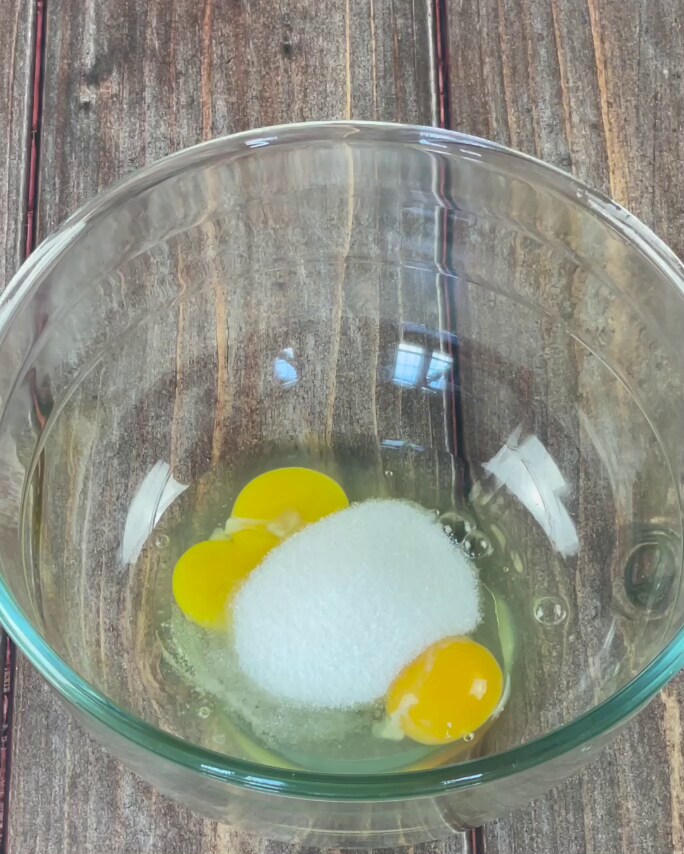 Commence la préparation des gaufres au chocolat en mettant dans un saladier les œufs et le sucre. Mélange avec les fouets jusqu’à ce que le sucre soit complètement dissous.