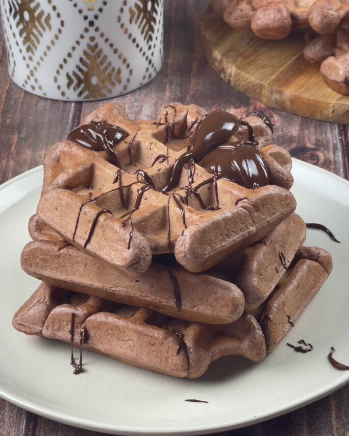 La pâte à base de cacao et le coulis de chocolat noir rendent ces gaufres irrésistibles !