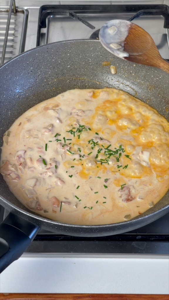 La sauce de ces gnocchi est vraiment simple à préparer : il suffit de cuire tous les ingrédients prévus dans une poêle pendant moins de quinze minutes.