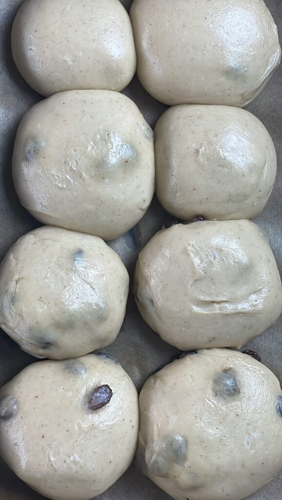 Cette recette est idéale pour ceux qui aiment les pains levés faits maison et cherchent un dessert ou un goûter qui allie saveurs traditionnelles et aspect attrayant. Parfaits à déguster tout juste sortis du four ou légèrement grillés, ces buns se prêtent à d’innombrables occasions.