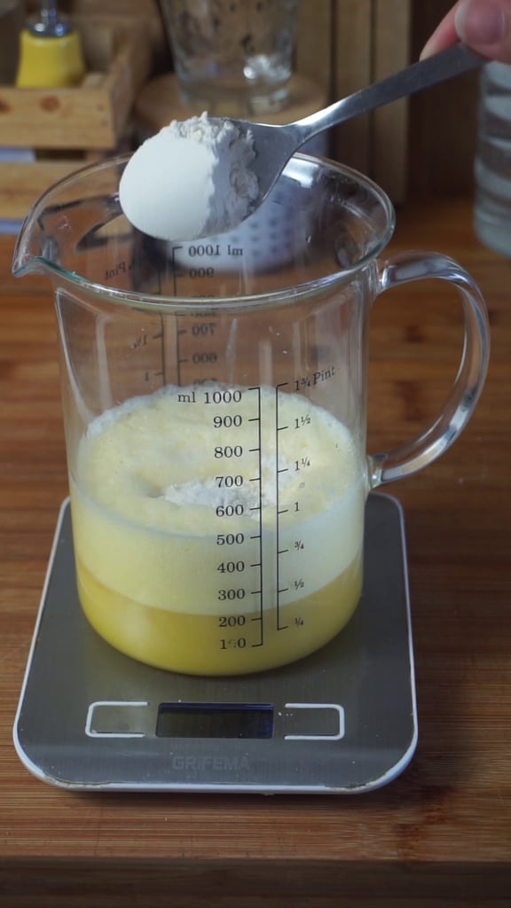 À ce stade, ajoutez également le lait – si vous êtes intolérant au lactose, vous pouvez utiliser une boisson végétale non sucrée – et mélangez à nouveau.