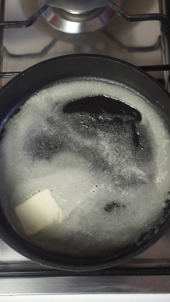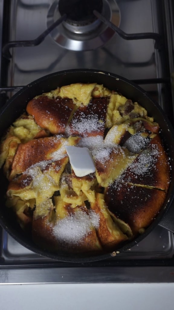 Passez maintenant à la cuisson du Kaiserschmarrn : faites fondre dans une poêle – celle que j’ai utilisée mesure 20cm de diamètre – 30 g de beurre.
