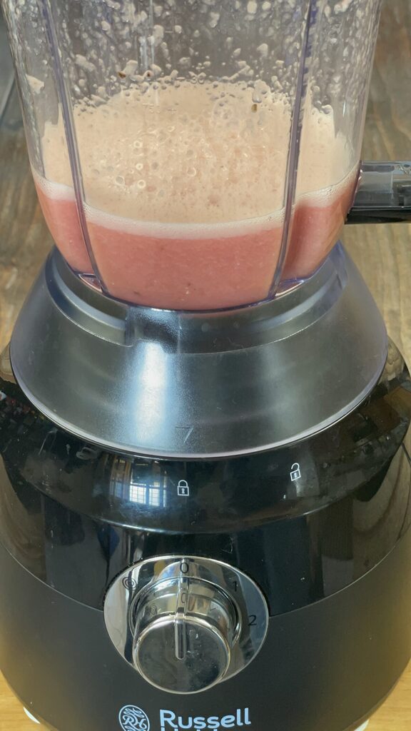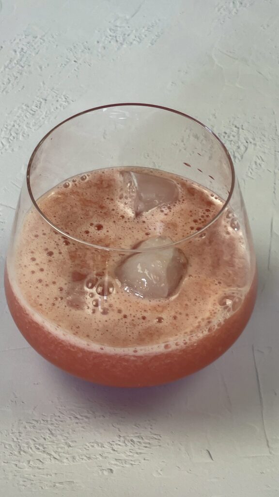 Si tu préfères, tu peux filtrer la boisson pour éliminer d’éventuelles petites graines restantes du nettoyage de la pastèque.