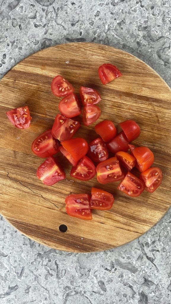 • Lavez les tomates cerises et coupez-les en deux ou en quartiers selon leur taille.