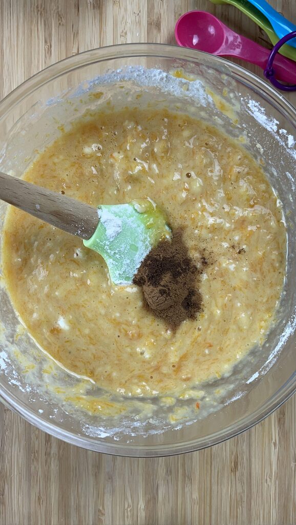 Terminez la préparation de la pâte en ajoutant les épices : la cannelle et la vanille conviennent, mais si vous en avez la possibilité, je vous recommande les épices pour tarte à la citrouille.