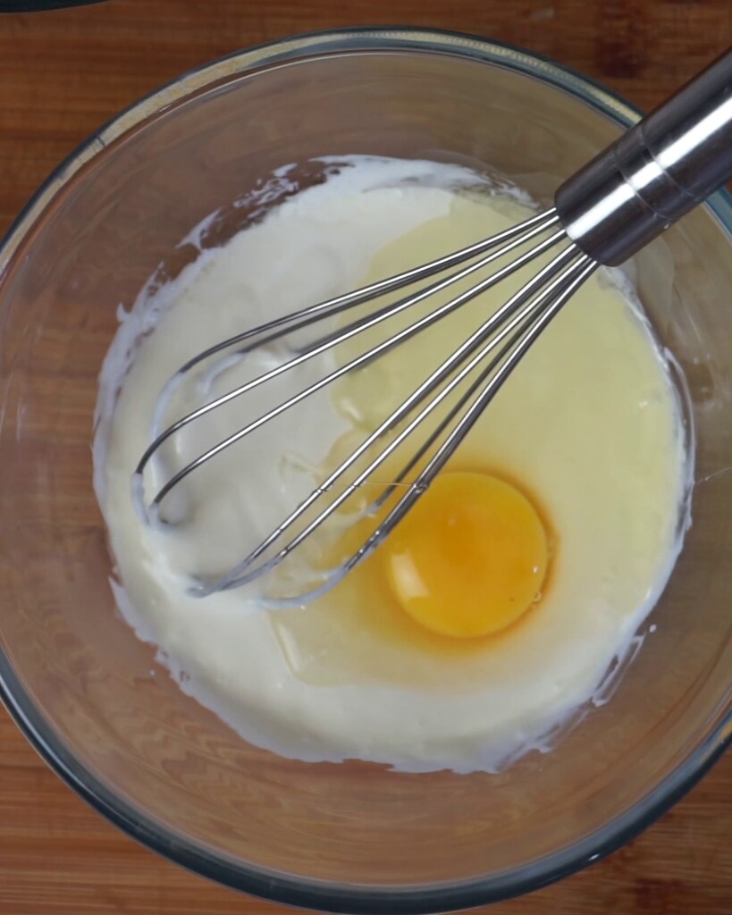Ajoutez au babeurre le beurre fondu et l’œuf et mélangez avec les fouets pour bien amalgamer tous les ingrédients.