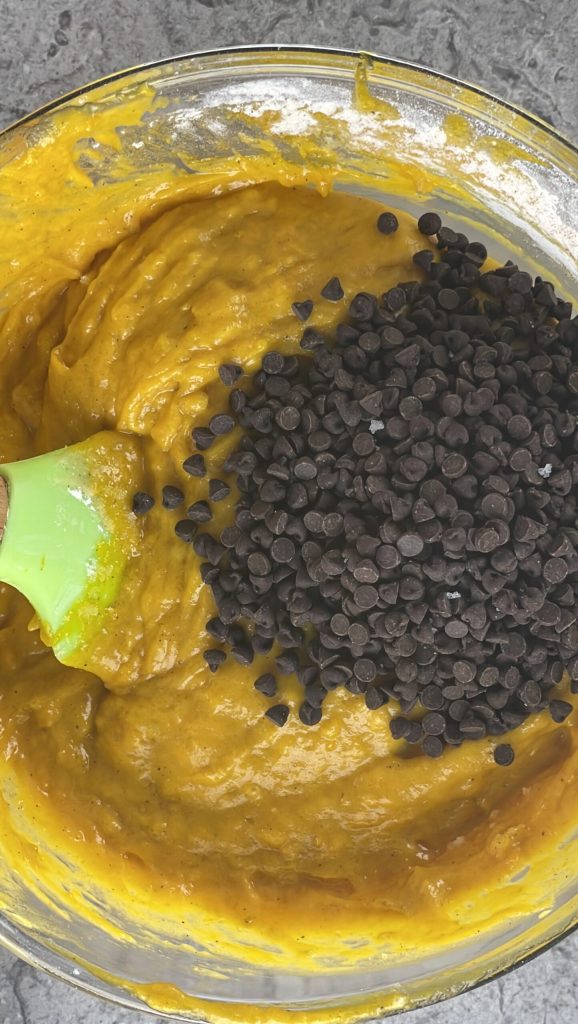 Terminez la pâte en ajoutant les pépites de chocolat et mélangez à nouveau.