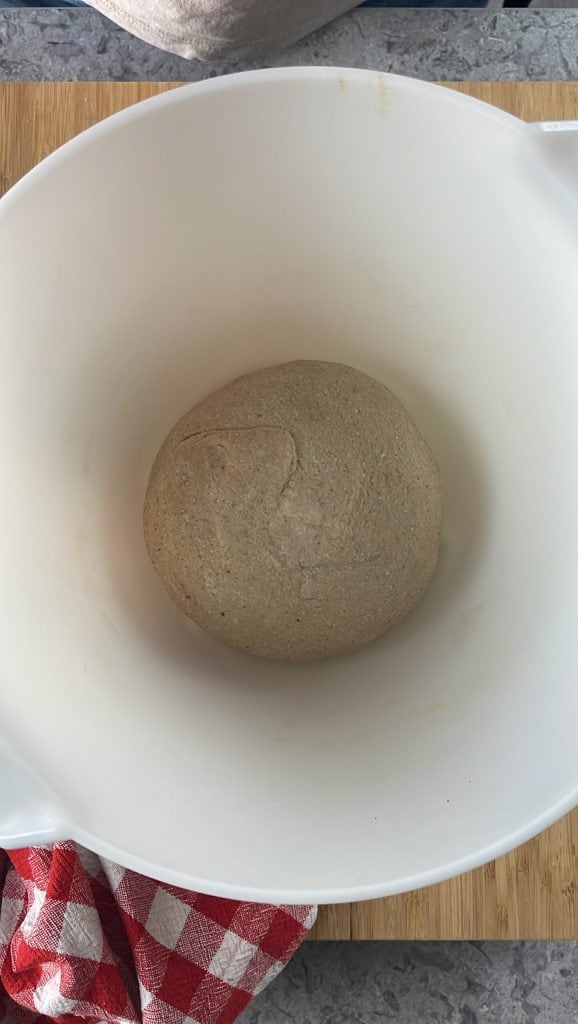Transférez la pâte sur le plan de travail, faites quelques plis et formez une boule.