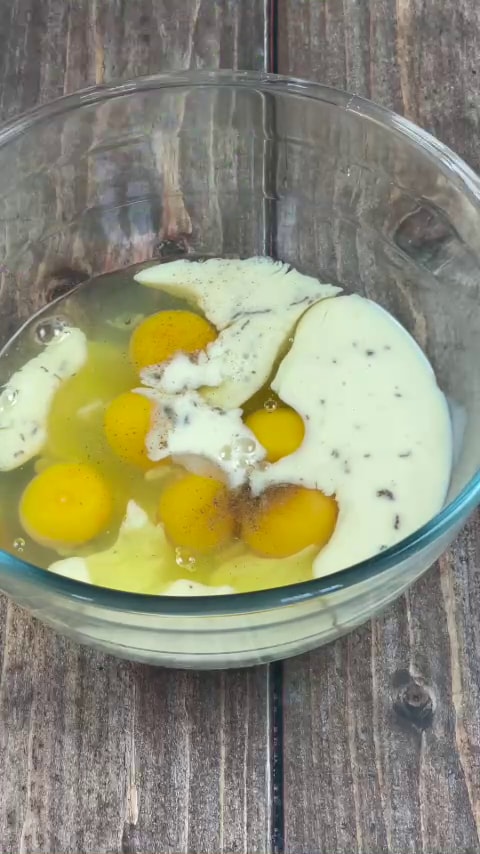 Commencez la préparation des pains perdus de pandoro en mettant dans un bol les œufs, le lait, la cannelle et l’extrait de vanille.