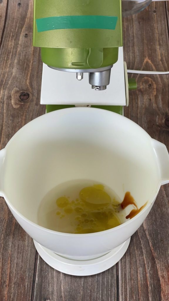 Pétrissez avec le crochet à spirale à vitesse moyenne.Lorsque la pâte s’est accrochée au crochet, éteignez et laissez reposer pendant 10 minutes.