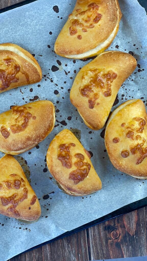 Transférez toutes les demi-lunes de pâte sur une plaque recouverte de papier cuisson et laissez lever encore une heure.